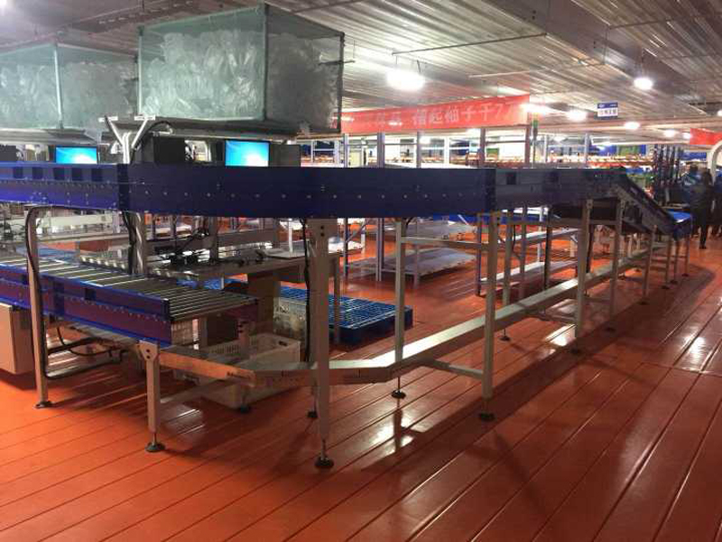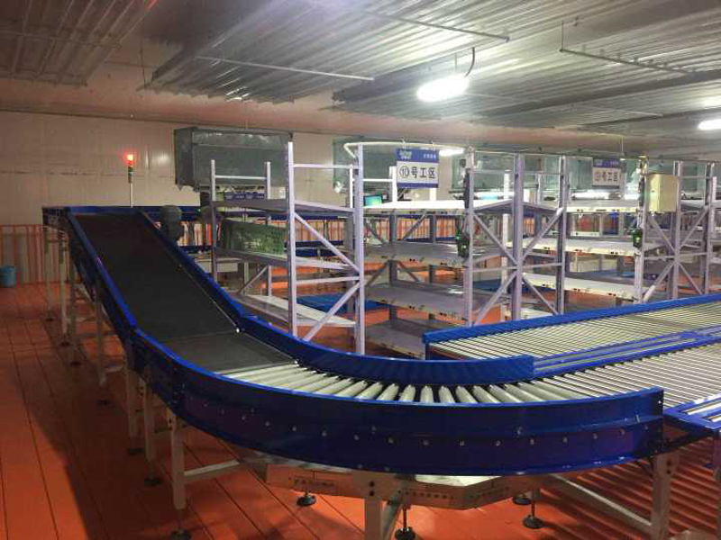 安鮮達天津倉物流輸送分揀項目是寶開集成的生鮮行業大中型項目,項目分兩期進行,一期輸送線項目輸送能力最高可達3000箱/時;二期分揀項目包括一樓出庫分揀線、所有輸送線的電控、監控及WCS系統等;分揀能力達6000件/時。