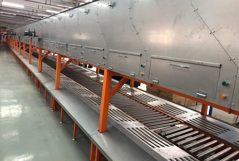 湖南狐軒服飾株洲物流中心智能自動化輸送分揀項目,集成了箱輸送系統、螺旋式提升機、交叉帶分揀系統、主控系統和寶開自主研發的BIS信息系統,實現了貨物的跨樓層搬運、整箱及拆零揀選出庫、貨品的包裝、出庫分揀、退貨同款合并等功能的智能化。